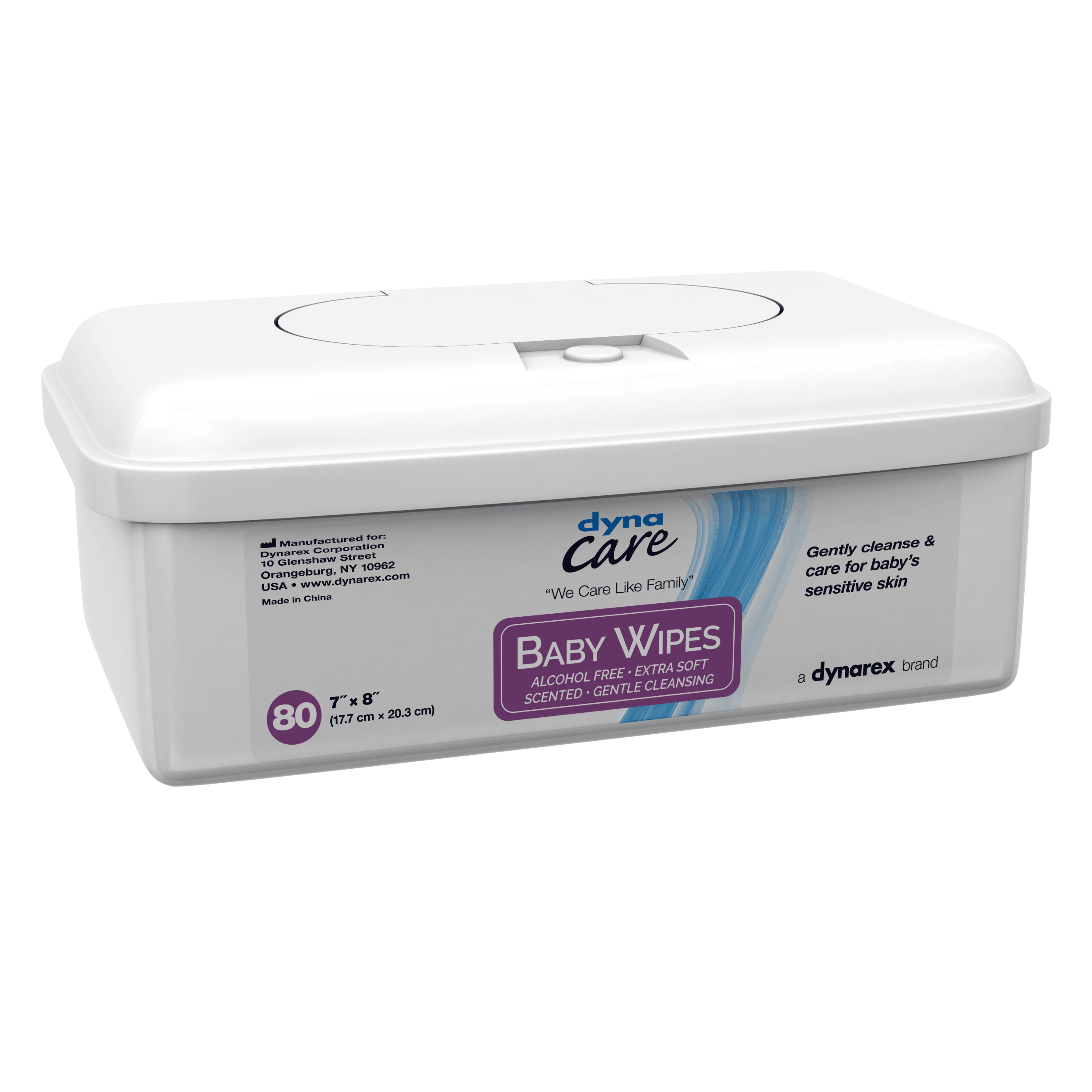 Dynarex Baby Wipes provide soothing, gentle cleansing with added moisturizers—ideal for delicate skin in both professional and home care environments.