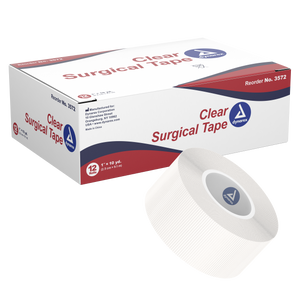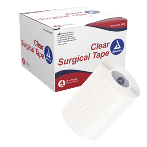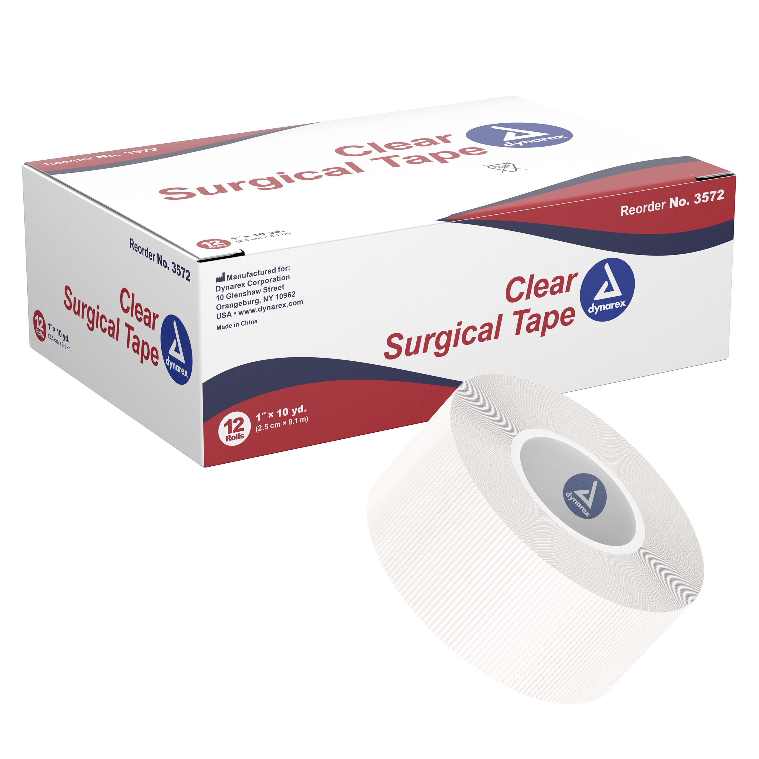 Dynarex Clear Surgical Tape is a flexible, transparent tape designed to conform to body contours while securely holding dressings, catheters, and IV tubing in place.