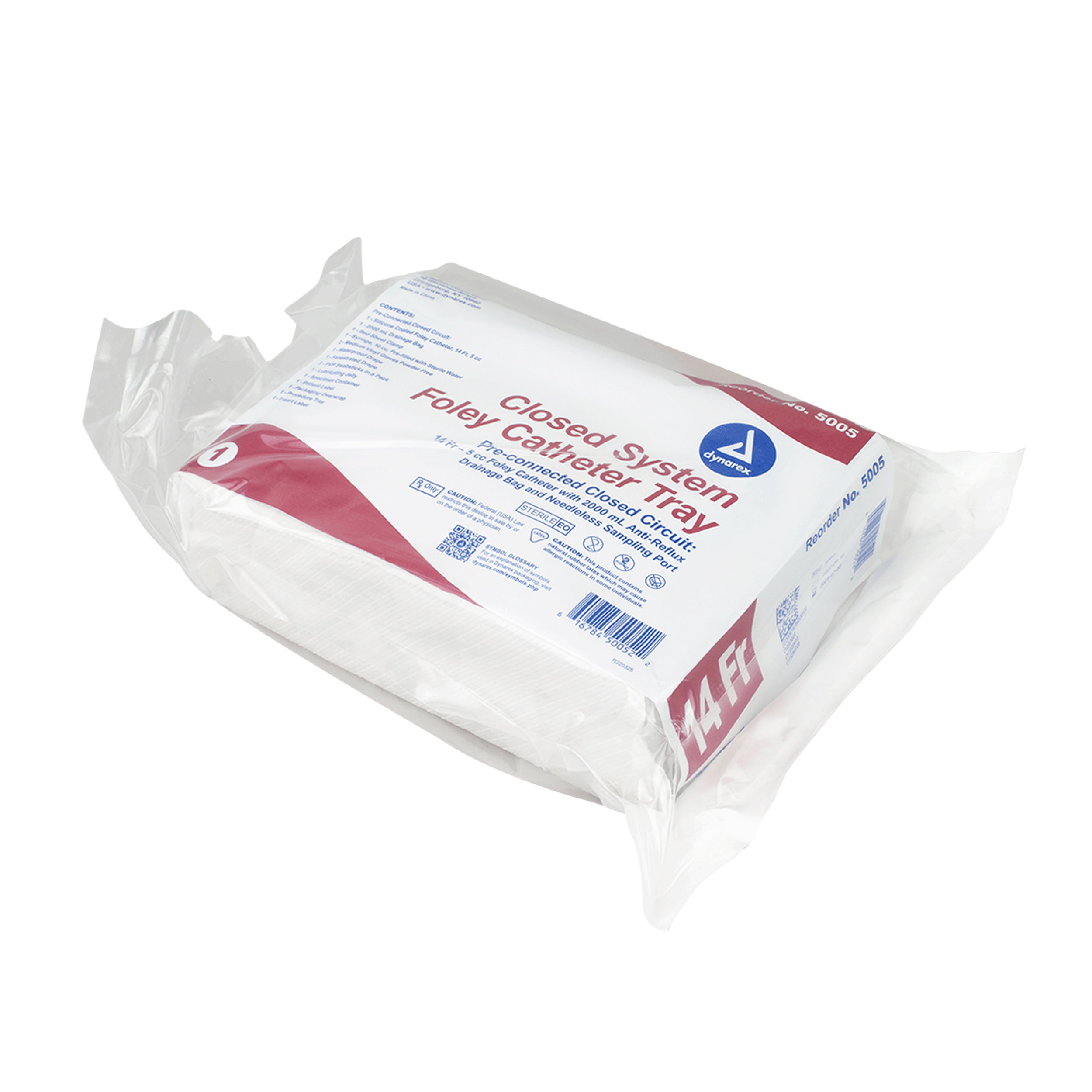The Dynarex Closed System Foley Catheter Trays are complete, ready-to-use catheterization kits designed to help provide safe, efficient urinary catheterization while minimizing tissue irritation and reducing the risk of urinary tract infections. Each sterile, single-use tray contains all the essential components needed for the procedure, including a Foley Catheter, 2000 mL drainage bag, lubricating jelly, and drapes. The closed system design helps maintain sterility and provides convenience for healthcare providers in hospitals, clinics, and long-term care settings.