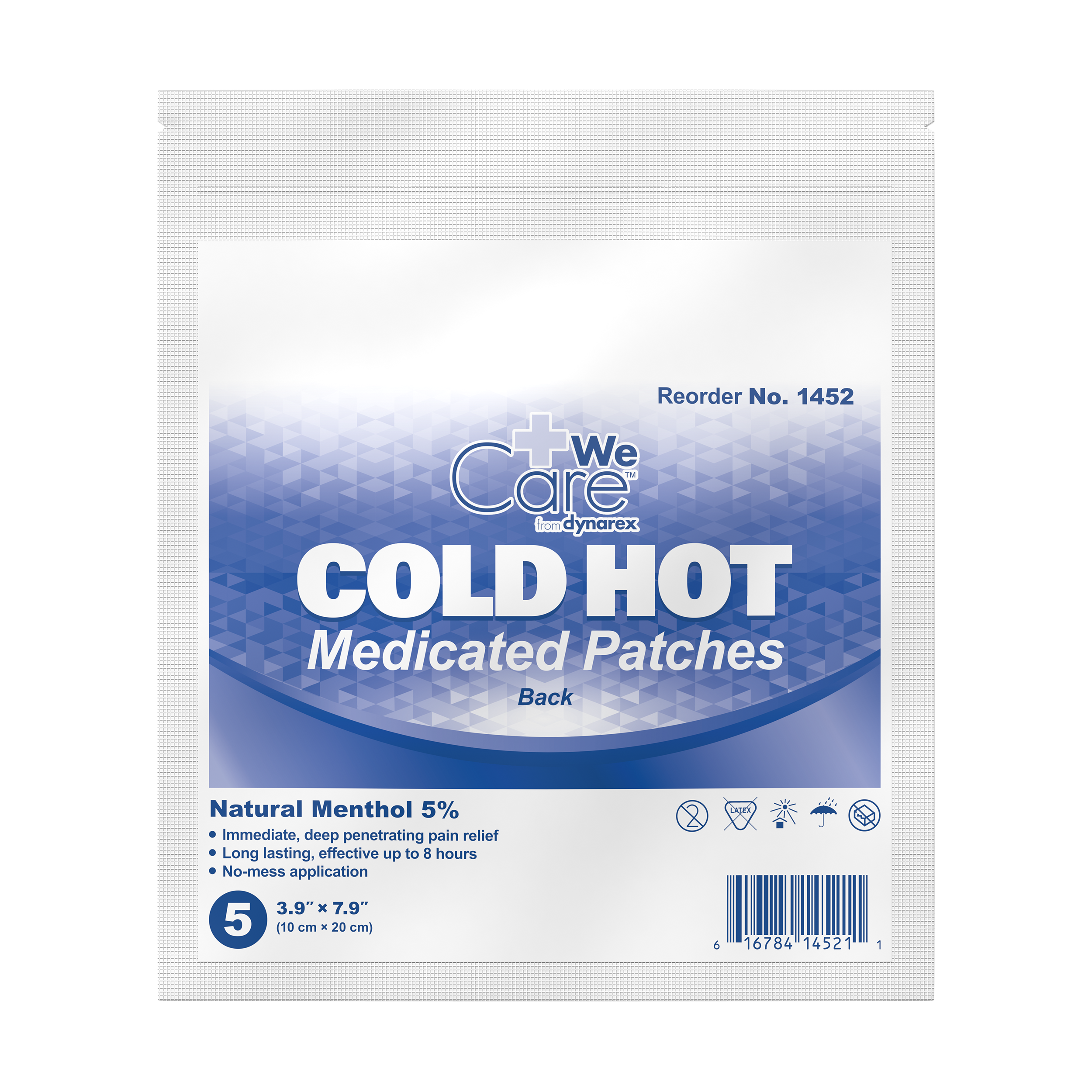Dynarex Cold Hot Medicated Patches relieve muscle and joint pain with restorative coolness and soothing warmth. Self-adhering, prescription-strength patches follow the contours of a patient's body and provide ultimate pain relief. Ideal for rehabilitation centers, athletic facilities, schools, and home use.