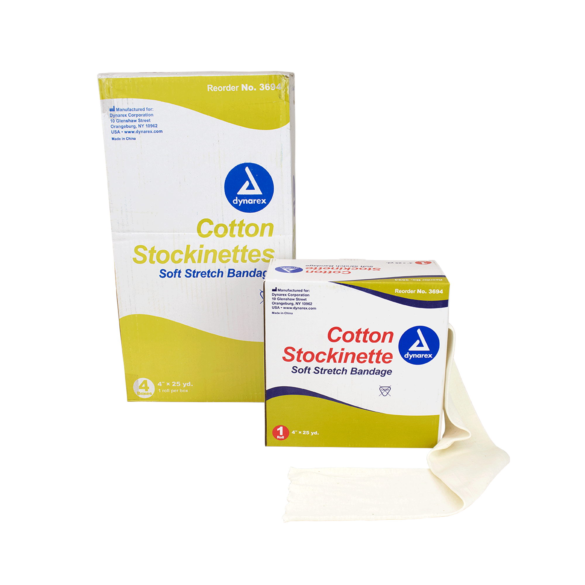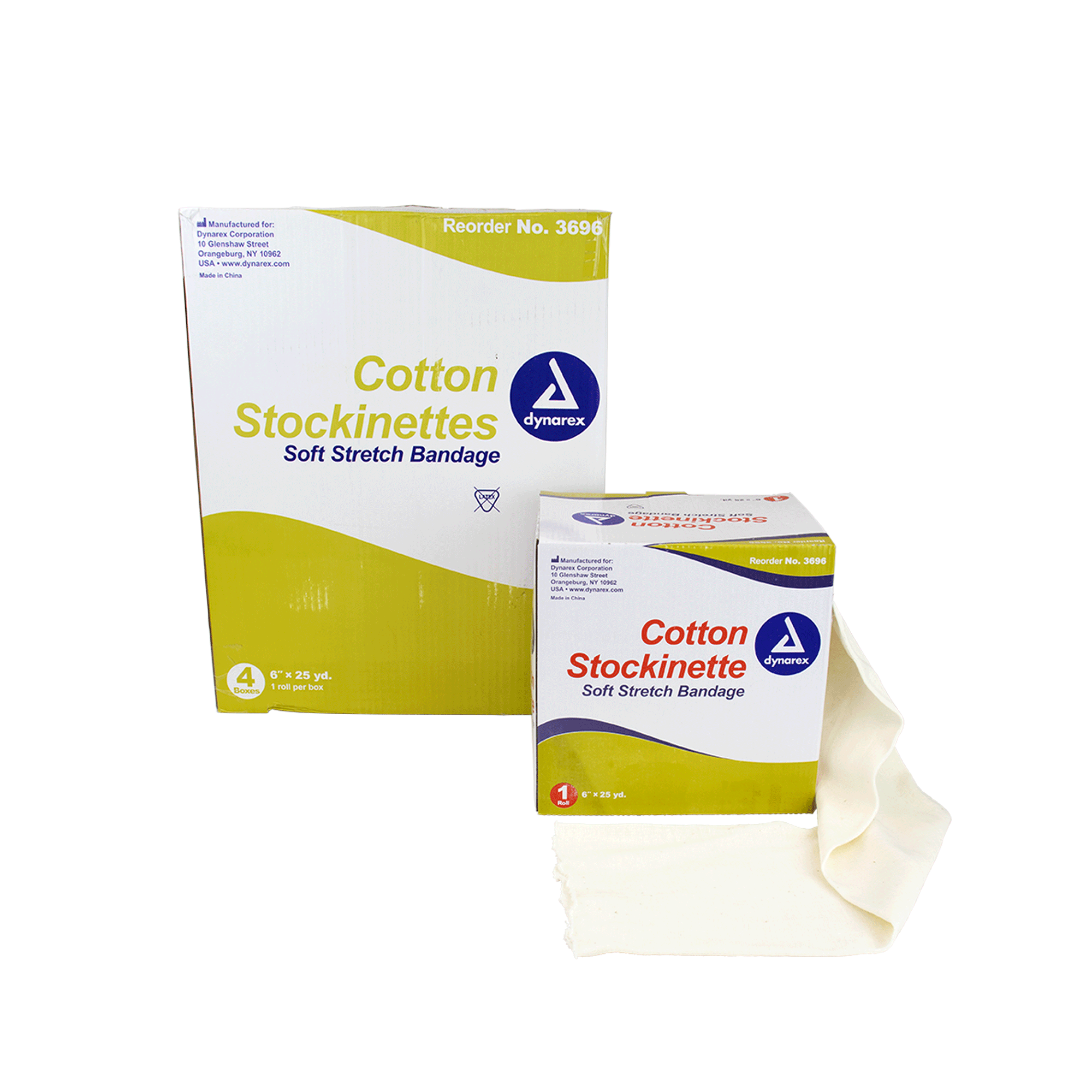 Dynarex Cotton Stockinettes are soft, tubular bandages designed to protect the skin under casts or splints while providing comfort and breathability.