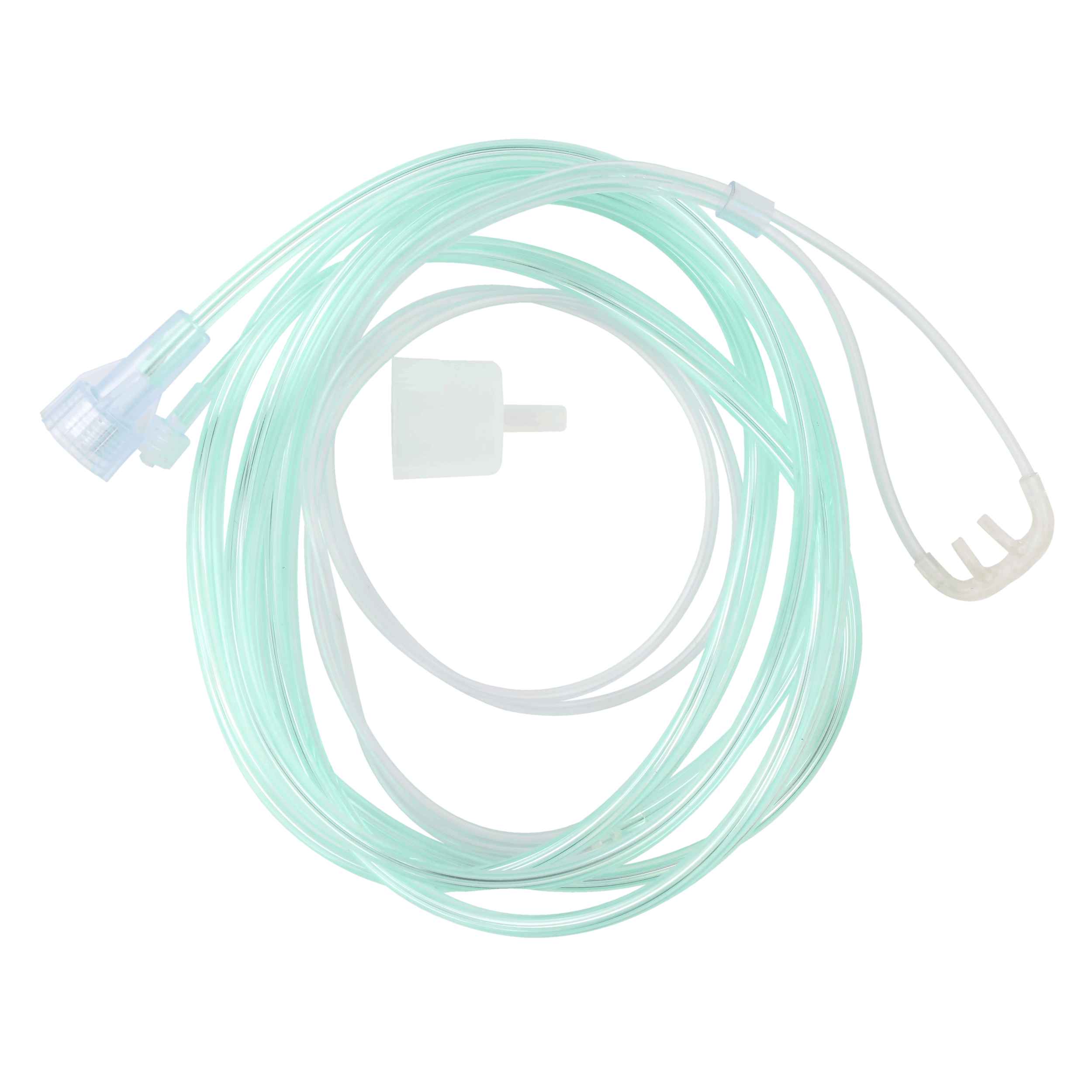 - Permanent barrier between nasal prongs allows for EtCO2 sampling with uninterrupted oxygen delivery