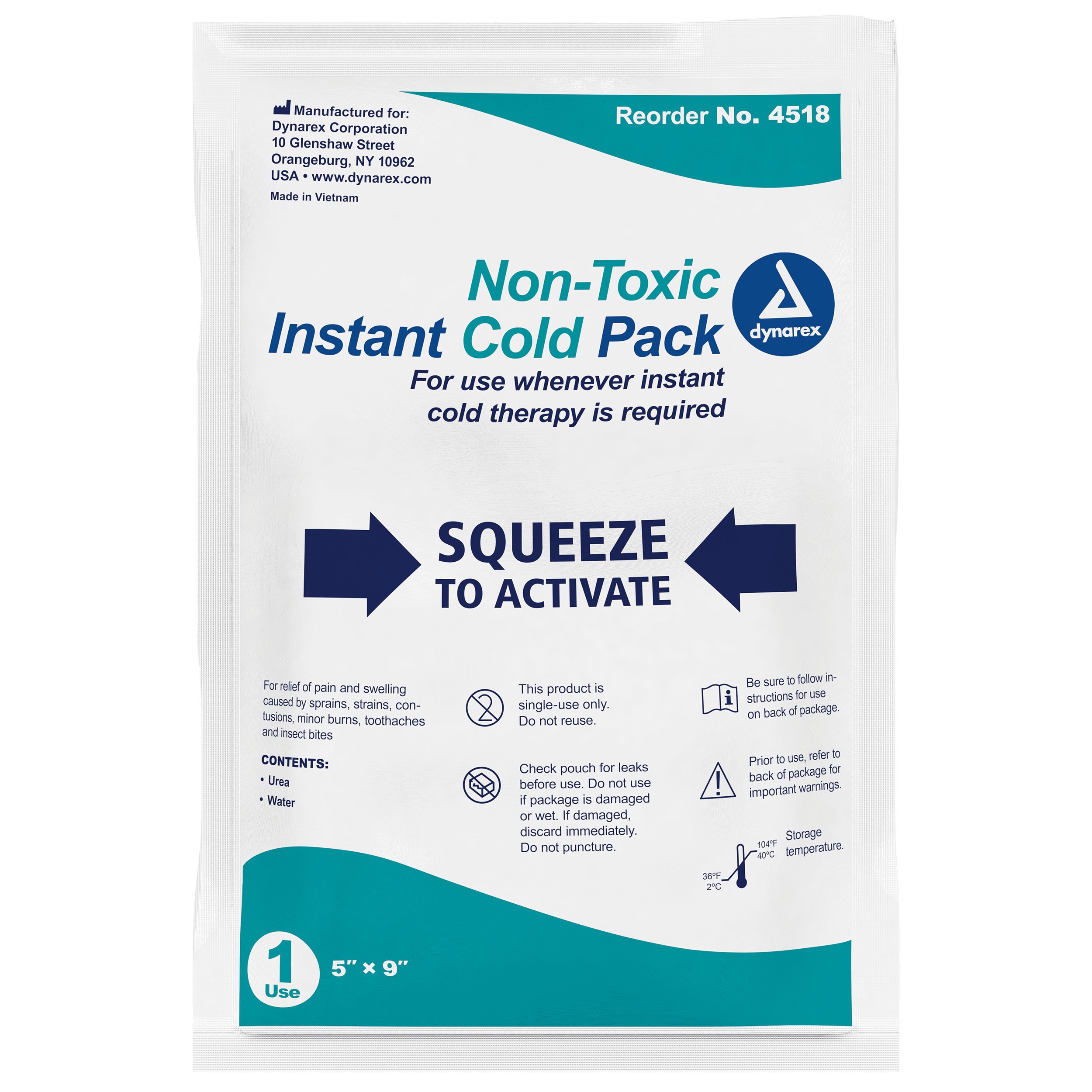 Dynarex Instant Hot and Cold Packs are convenient, single-use heating and cooling aids designed to provide rapid relief for minor injuries, aches, and pains. The flexible packs easily conform to body contours and are quickly activated by a single squeeze. This non-toxic cold pack with urea is ideal for safe, effective cooling therapy in a variety of situations.
