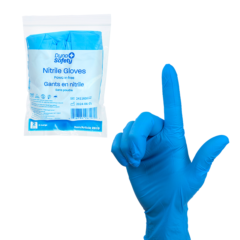 DynaSafety Nitrile Gloves are high-quality nitrile gloves designed for enhanced protection and tactile sensitivity. These ambidextrous, powder-free gloves feature textured fingertips for increased grip and beaded cuffs to allow for easy donning.