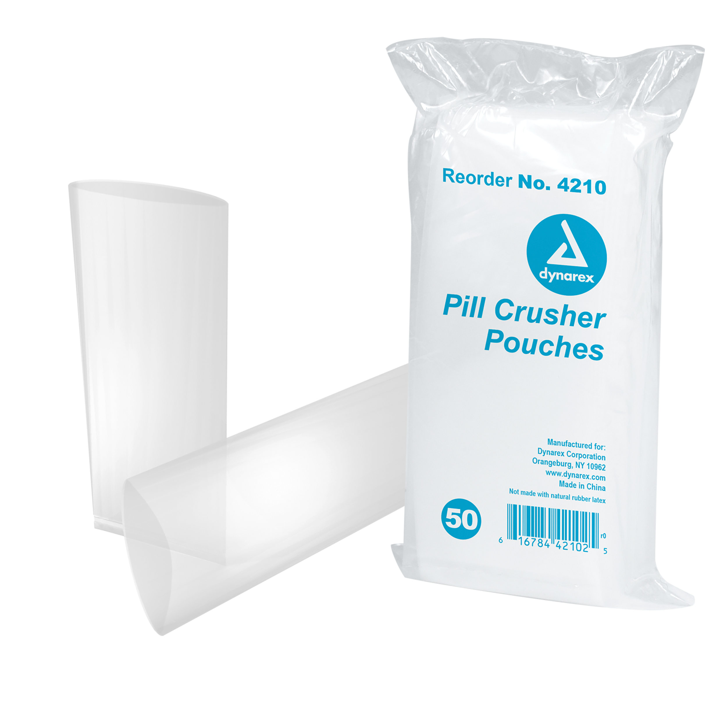 The Dynarex Pill Crusher Pouches help eliminate cross-contamination by providing a protective barrier between pills and crusher machines. These clear, disposable pouches safely contain pills during the crushing process, making cleanup quick and easy. The see-through plastic design allows for fast identification of contents, while the 2" × 4.5" size fits most pill crusher machines. Convenient and versatile, these pouches can also be used for a variety of other small-item storage needs.