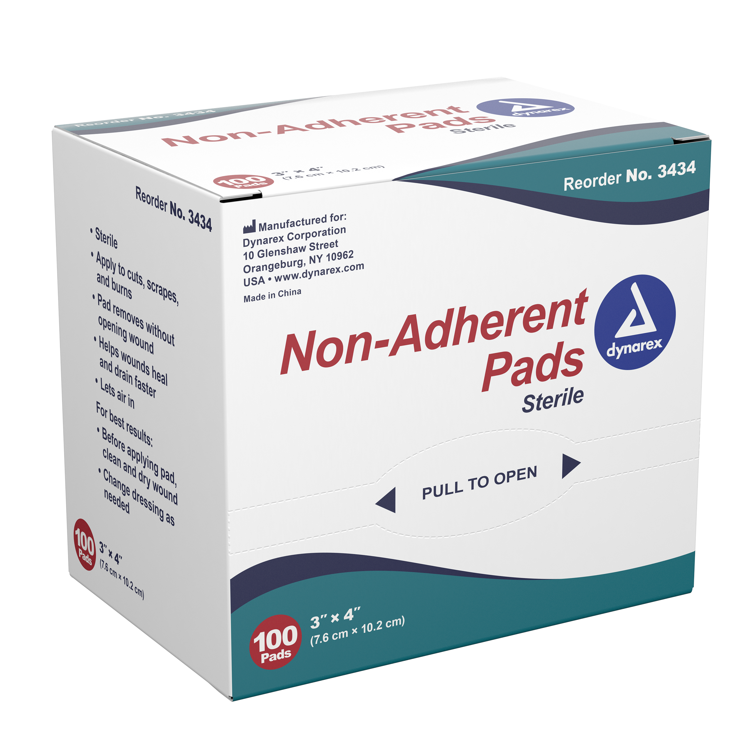 Dynarex Non-Adherent Pads are sterile, cotton/polyester wound dressings designed to protect cuts, scrapes, and burns without sticking to the wound site.