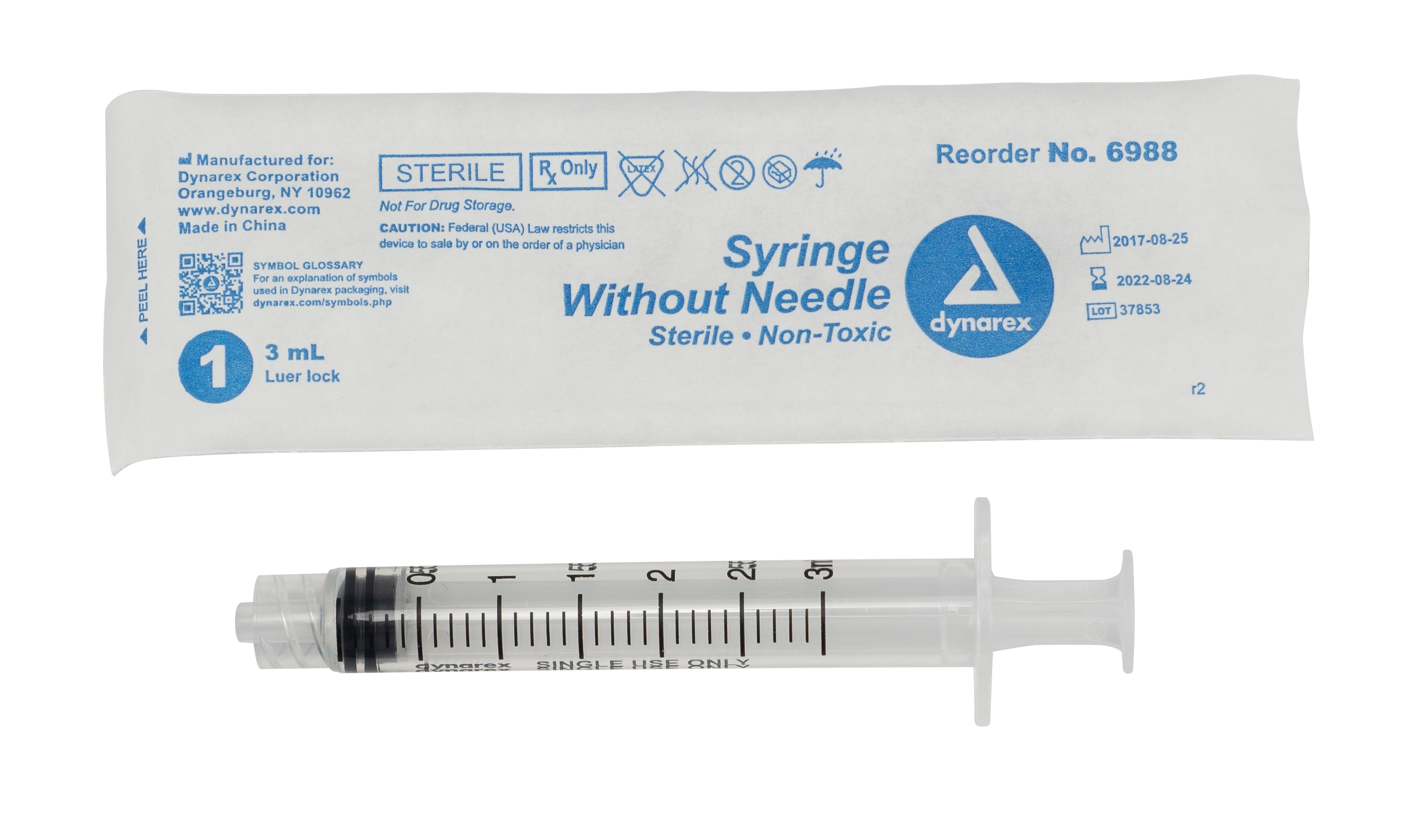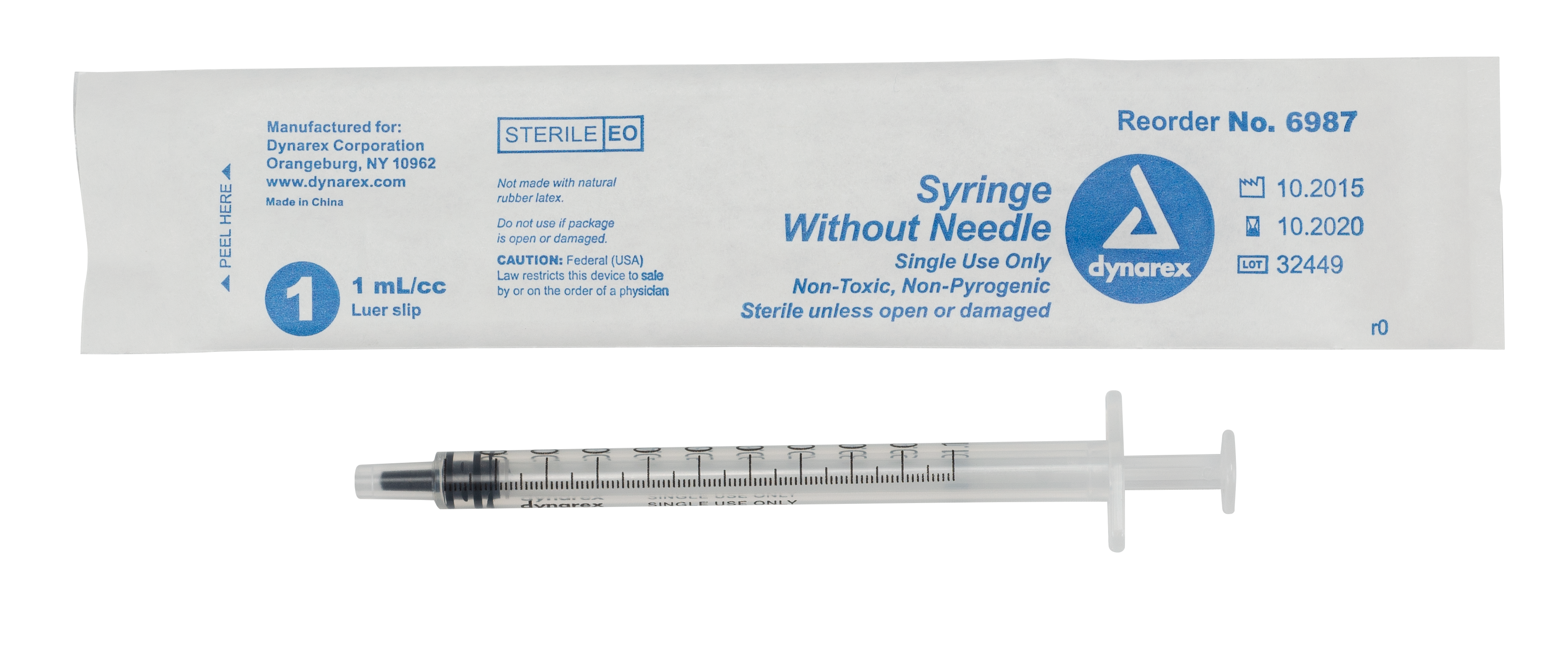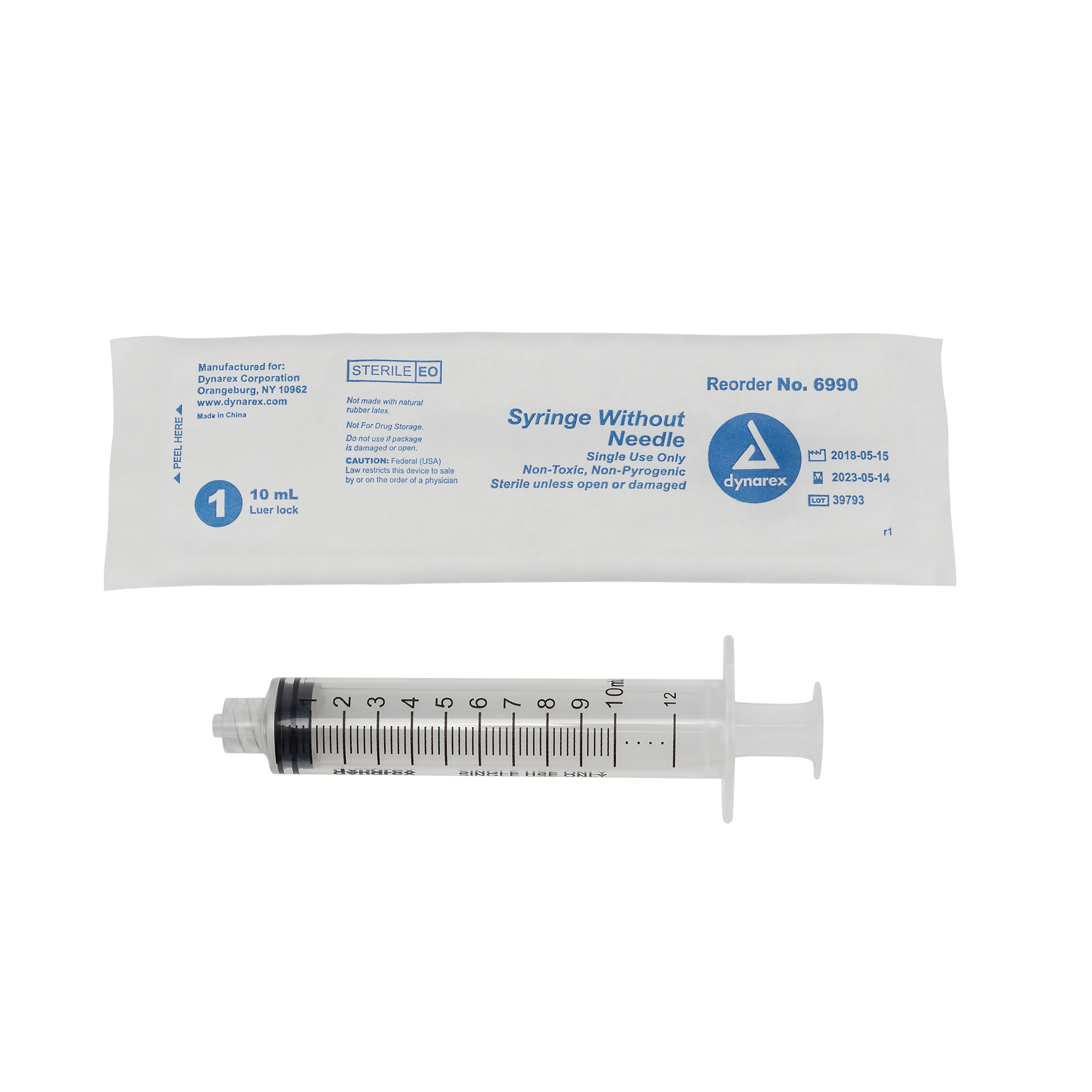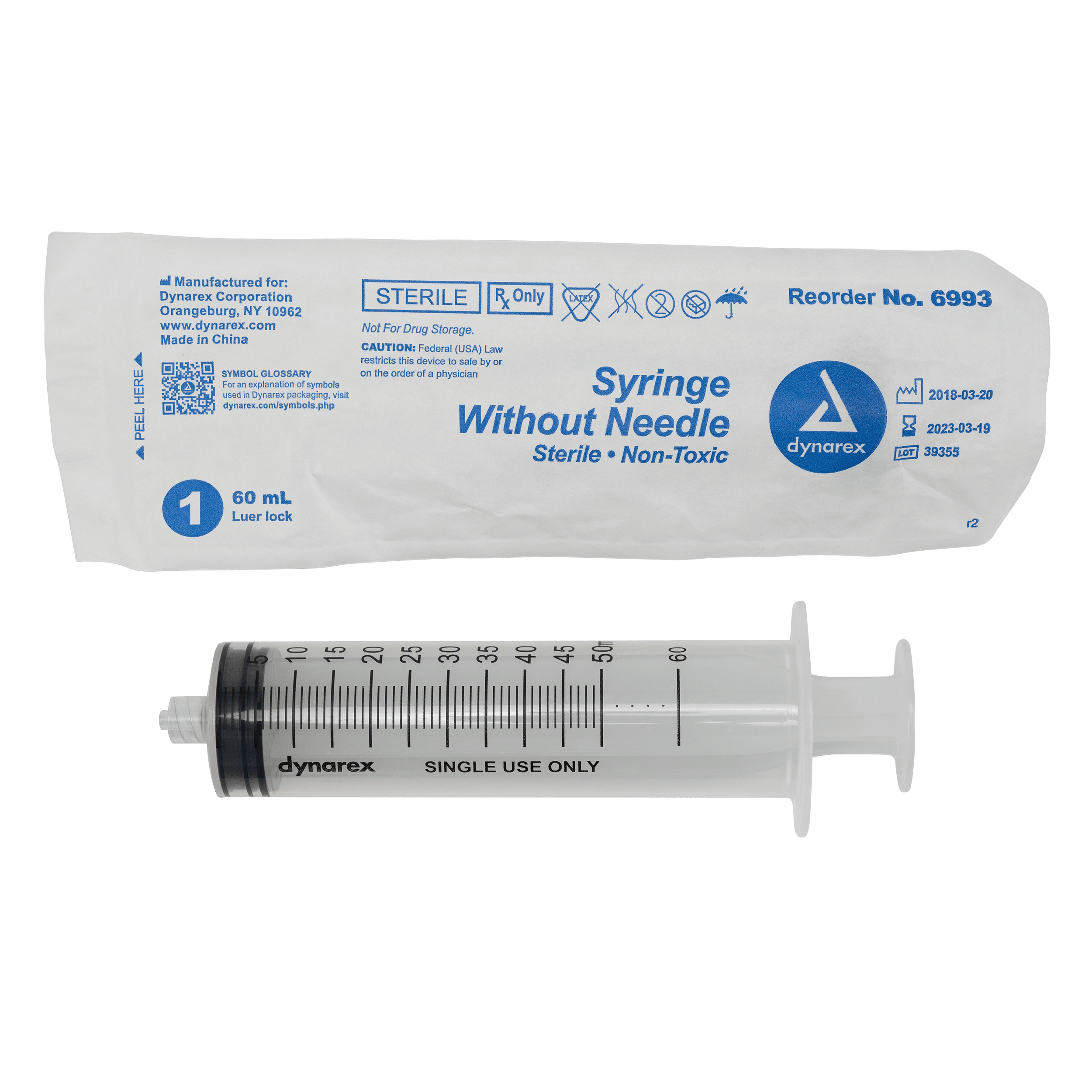 Dynarex Syringes Without Needles are high-quality, sterile syringes designed to provide accurate medication dosing in a variety of medical settings. These versatile syringes are compatible with both luer slip and luer lock needle connections. Each syringe features a transparent barrel with bold markings for precise measurement and a smooth-gliding plunger for consistent, controlled pressure.