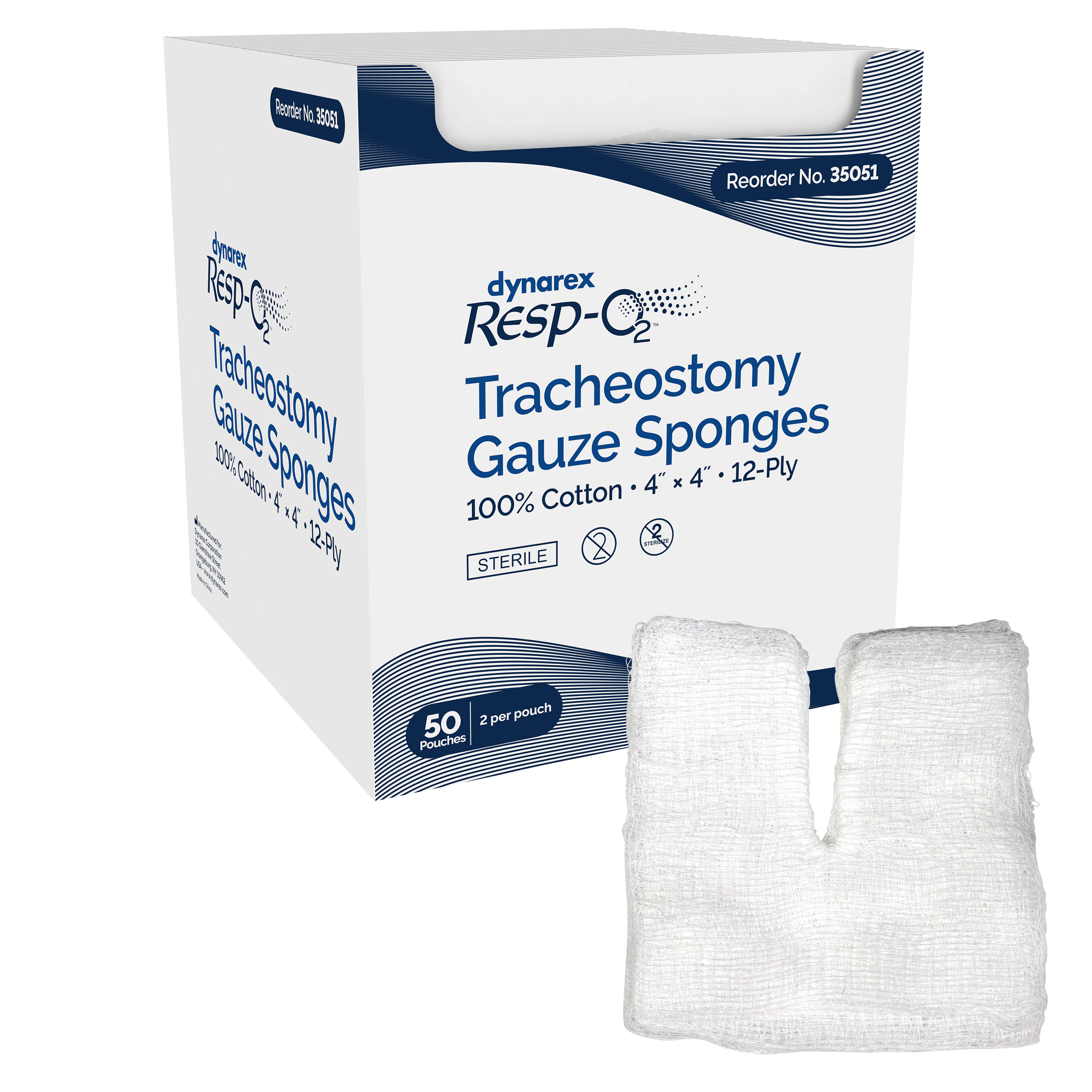 Dynarex Resp-O2™ Tracheostomy Drain Sponges are high-quality sterile dressings designed with a pre-cut T-shaped notch for secure placement around tracheostomy tubes, drains, catheters, and IVs. These highly absorbent pads help maintain a dry wound environment and enhance patient comfort during care.